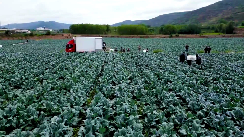 初秋,正是高原夏菜丰收好时节。在庄浪县南湖镇庄浪河流域高原夏菜种植基地,一片片长势喜人的西兰花迎来了丰收季,菜农们在地里忙着采收;不远处的产业园里,客商忙着装车、发货,到处一派产业兴旺的丰收景象。四川承包大户阿尔七得一边在地里忙碌,一边通过电话联系外地客商。这是他第二年在南湖镇种植西兰花,500多亩西兰花已经全部签订了销售合同。“西兰花主要发往西安、兰州,四川等地的蔬菜批发市场和各大超市。庄浪县气候、土地都比较适宜,种植的西兰花颜色、球形都比较好,市场销量很好。”他乐呵呵地说道。