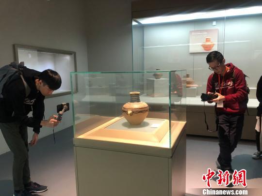 图为来自香港的36名师生近距离欣赏数千年前的彩陶精品 徐雪 摄