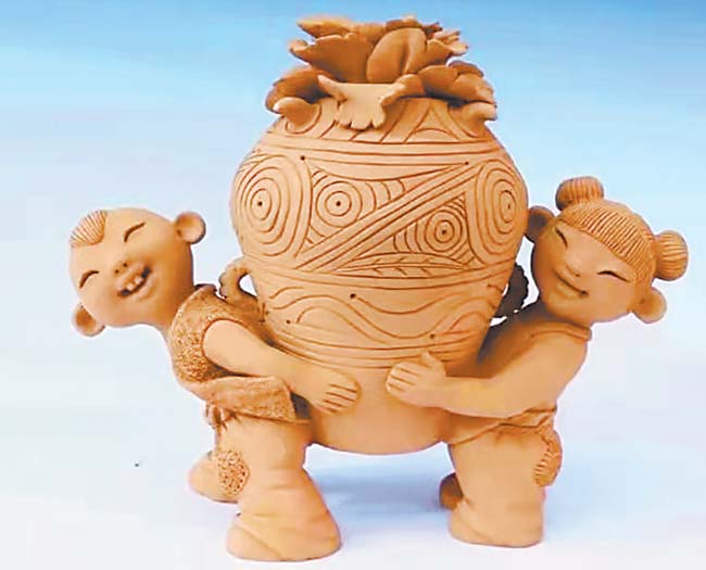 怀着对这片土地的深情厚爱,非物质文化遗产河州泥塑技艺代表性传承人常天平将泥塑与彩陶文化高度融合,创作的《富贵一品彩陶王》,以造型独特、花纹别致而闻名。该作品巧妙地把彩陶古朴典雅之美与河州牡丹文化以及天真烂漫的孩童结合起来,童趣融陶韵,牡丹依古风,融合历史与现代,人们在了解彩陶文化的同时,感受着彩陶文化时代的变迁。