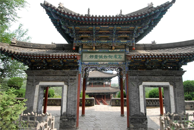 太昊宫门内第一台为山门院落,山门中间门为刘尔炘题额“高山仰止”,语出《诗经·小雅·车辖》的“高山仰止,景行行止”(仁德厚如高山让人敬仰;行事就行光明大道),陇上先贤仁德如高山,今人惟有敬仰学习。其他两门为“奋上兴下”“继往开来”,意为期望在位者与人民百姓都应振作起来,继承往昔圣贤绝学,匡扶社会,开拓未来太平盛世。