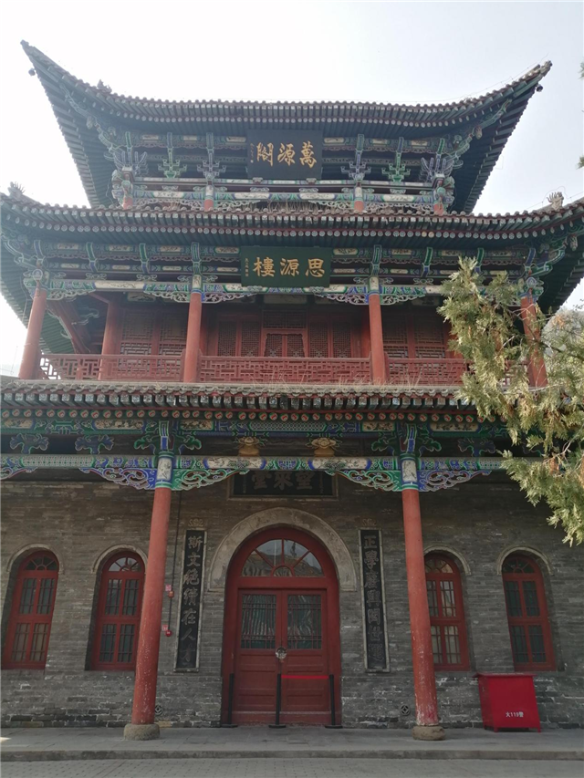 万源阁,位于大雄宝殿之后高台上,原为甘肃举院遗存明远楼,刘尔炘迁建于此,供奉中华四圣四贤,以明中华学术之渊源流派,宗旨是“尊孔”,修身齐家治国平天下,实现“治世”。三层为“万源阁”,祀儒家四圣伏羲、周文王、周公和至圣先师孔子,联曰“以阴阳消长,定世界安危”;中层为“思源楼”,祀宋明理学家四贤周敦颐、邵雍、程颐和朱熹,联曰“为千秋绵绝学,留一线是微阳”;一层为“望来堂”,联曰“正学废兴关世运,斯文绝续在人才”,用作兰州儒贤商量学术和刘尔炘讲课教学之用。在近代的乱世时代,兰州和国家都经历了动荡,并受到科技文明发达的西方列强不断侵略。刘尔炘认为,乱世是因为儒家思想得不到实施,西方科技文明可能会给人类带来更大灾难,要为后人保留儒学种子,希望后世出现贤能之士,取人之长,救己之短,挽救世运,造福兰州,造福中华,乃至造福整个人类社会。