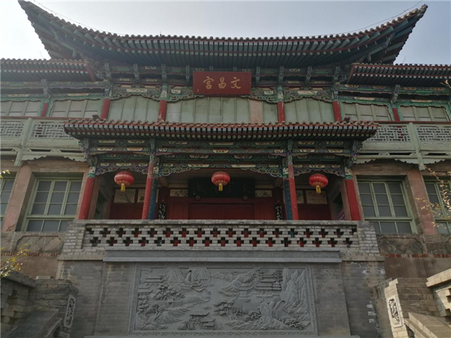 清虚府的东南侧为文昌宫,始建于明代,清光绪期间重建,共有两台,上台殿中供奉文昌帝君。文昌帝君为道家主管文运之神,民间习俗中读书人为考取功名也常祭拜。刘尔炘为其题联“莫只贪身外虚荣,忠孝性天真爵位;倘能有眼前神悟,山川云水大文章”,劝君不要贪图表面上的荣耀,忠孝的天性才是真正宝贵的,如果真有忠孝觉悟,眼前现实世界就可做一番事业。