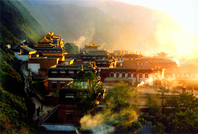 1932年,美国探险家哈里森·沸曼来到甘肃夏河,留下一句经典的旅游推介词:我向这个驰名远扬的拉卜楞寺投去了第一瞥,而就是这一瞥差点让我窒息,展现在眼前的真是一个名副其实的美丽之城。他栖息在众多小山之间的空地上,一条波光粼粼的山间溪流缠绕其间……
