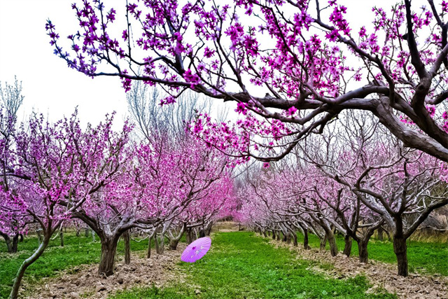 进入四月,敦煌鸣沙山下的李广杏花渐次盛开,粉白的花瓣缀满枝头,放眼望去,一片绚烂景象,漫步其间,尽情享受大自然的美丽风光。