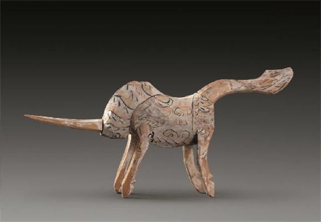 彩绘木独角兽·汉代·武威市磨嘴子汉墓出土
