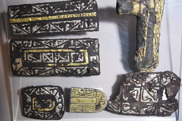 这是张家川回族自治县博物馆内展出的马家塬墓地西戎贵族马车车身金属构件(6月7日摄)。新华社记者 陈斌 摄