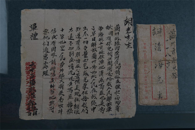 六十五军政治部给胡兴国父亲胡海清的信(兰州战役纪念馆藏)