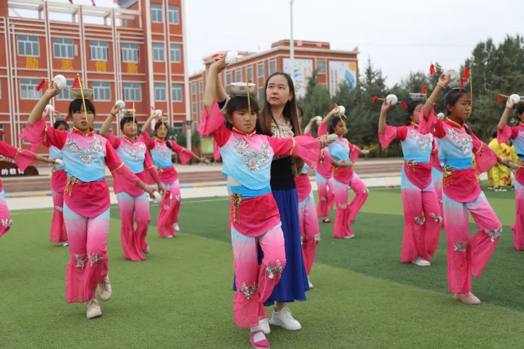 近日,在民乐县民联镇寄宿制小学操场上,《顶碗舞》市级非遗文化传承人胡惠芳老师正在指导孩子们进行民乐顶碗舞的练习。
