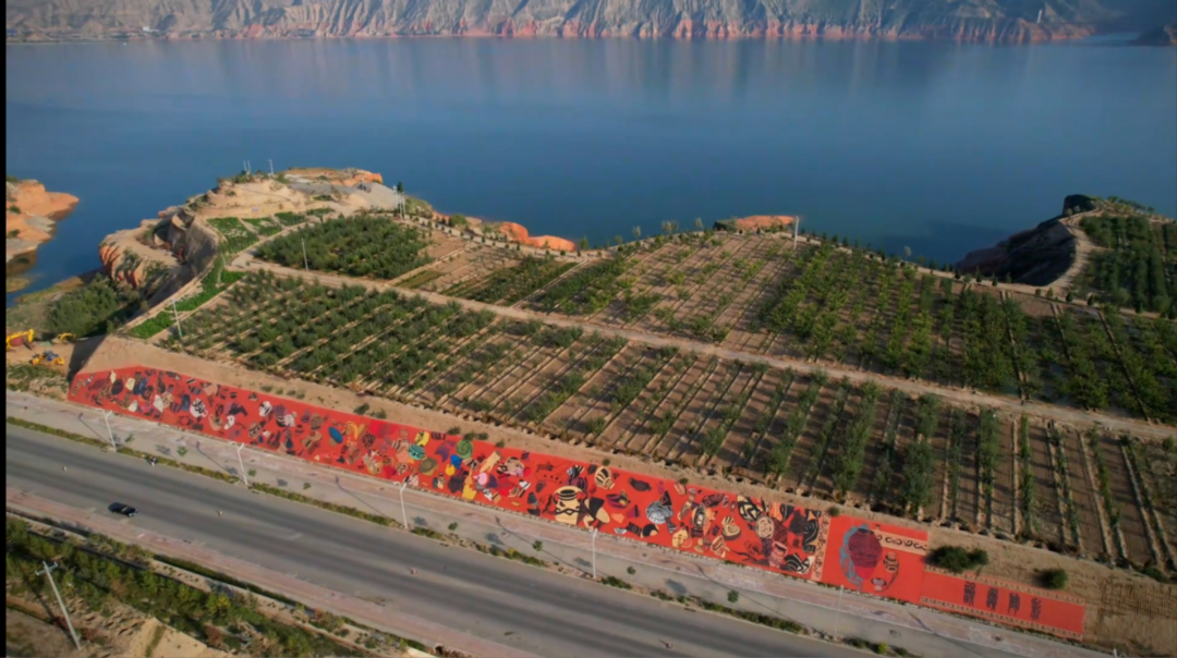 漫步在如诗如画的炳灵湖畔,水天一色的炳灵湖波光粼粼,连绵起伏的远山蝉翼朦胧,秋日的色彩斑斓、暖阳、微风和这震撼人心的墙绘巨制交相辉映,置身其中,仿佛被名家一笔点在了景色迷人的油画里面,享受、惬意、轻松、温暖……
