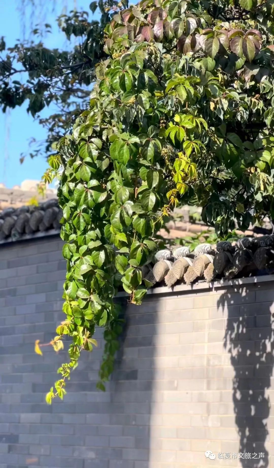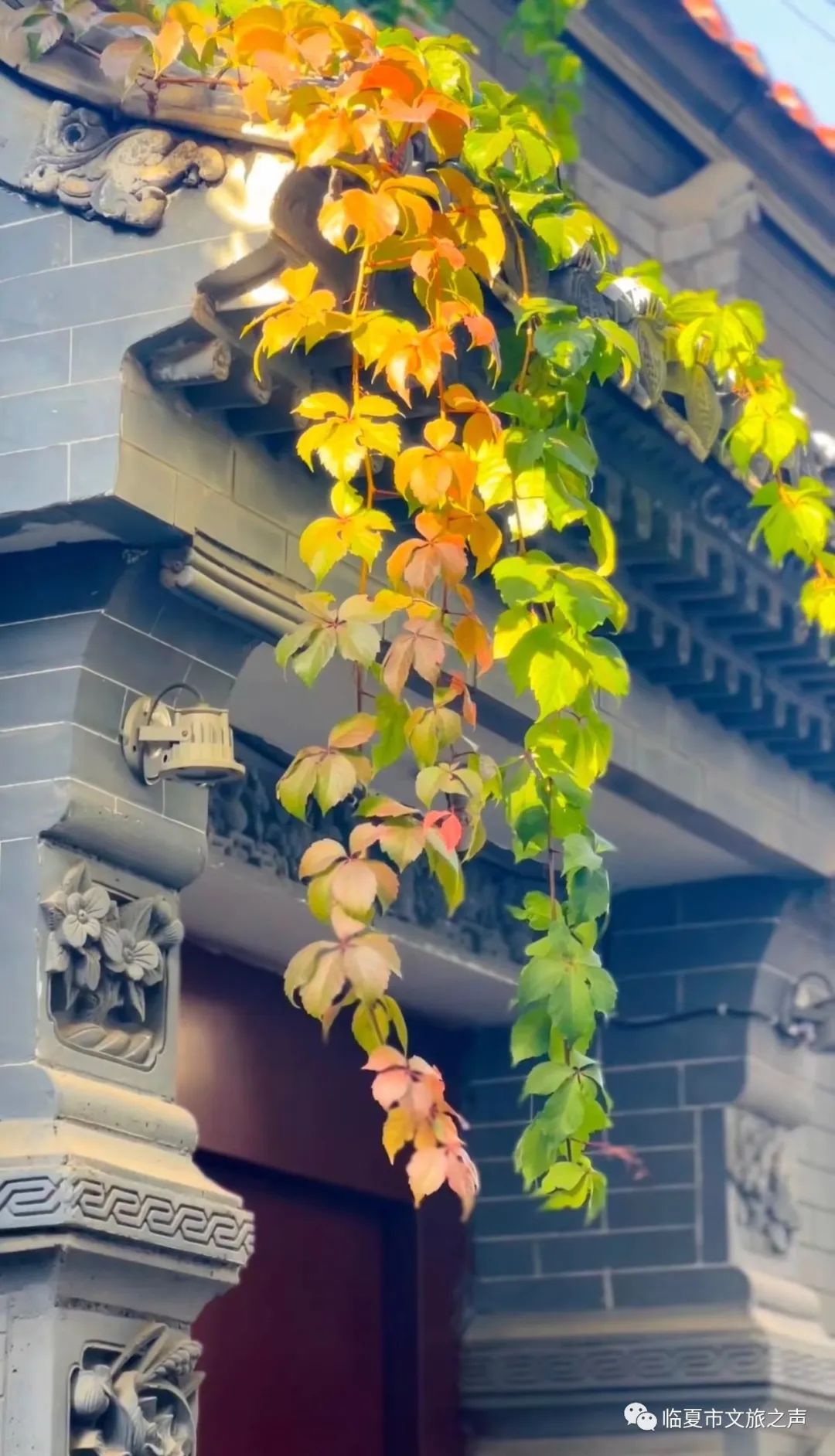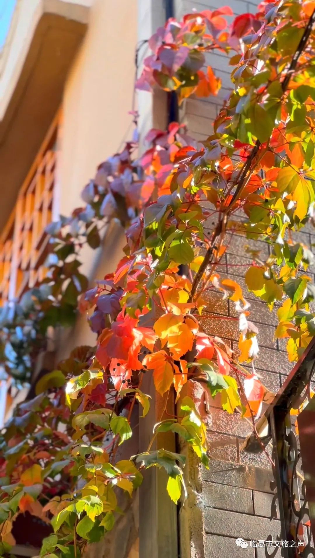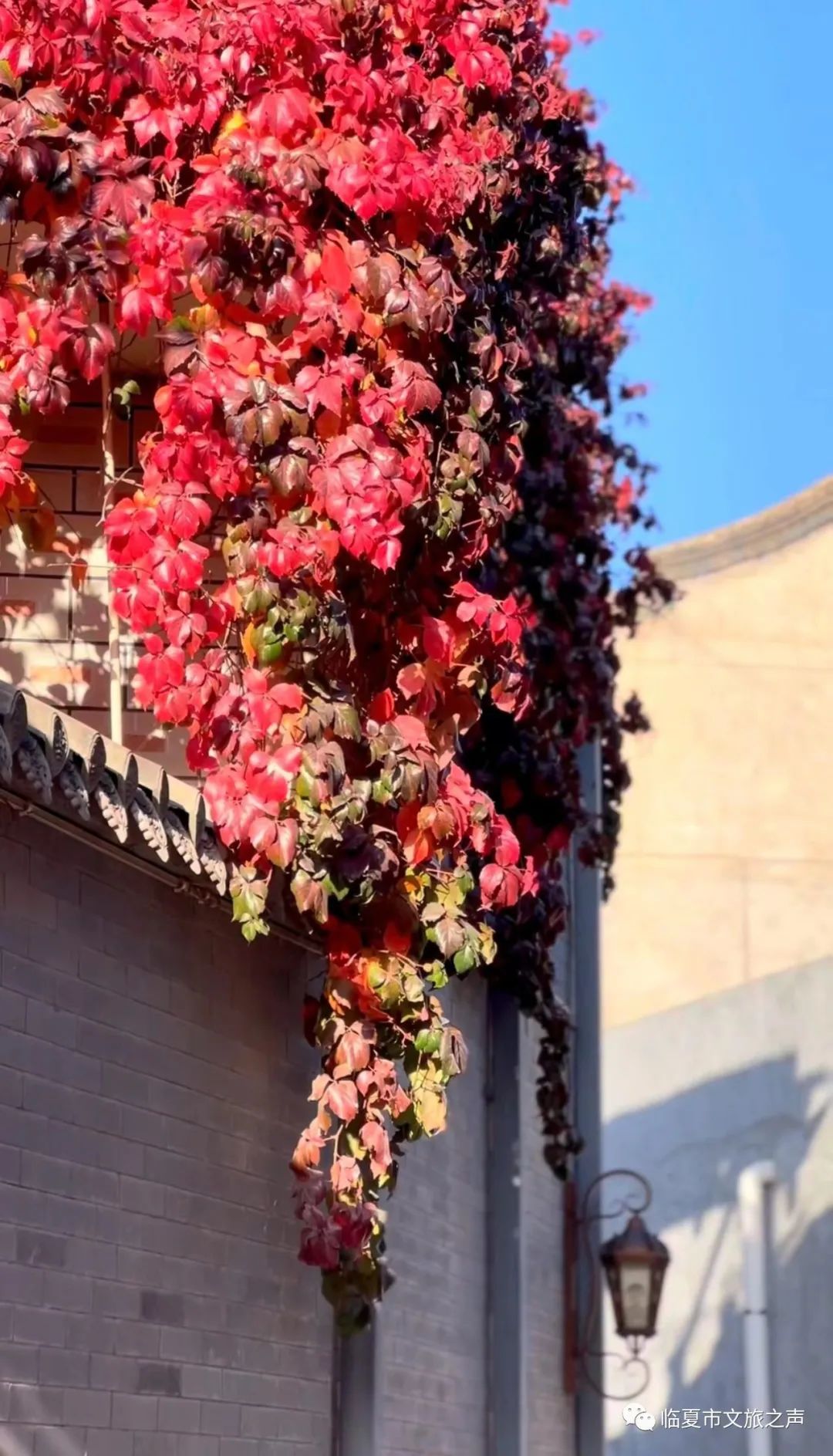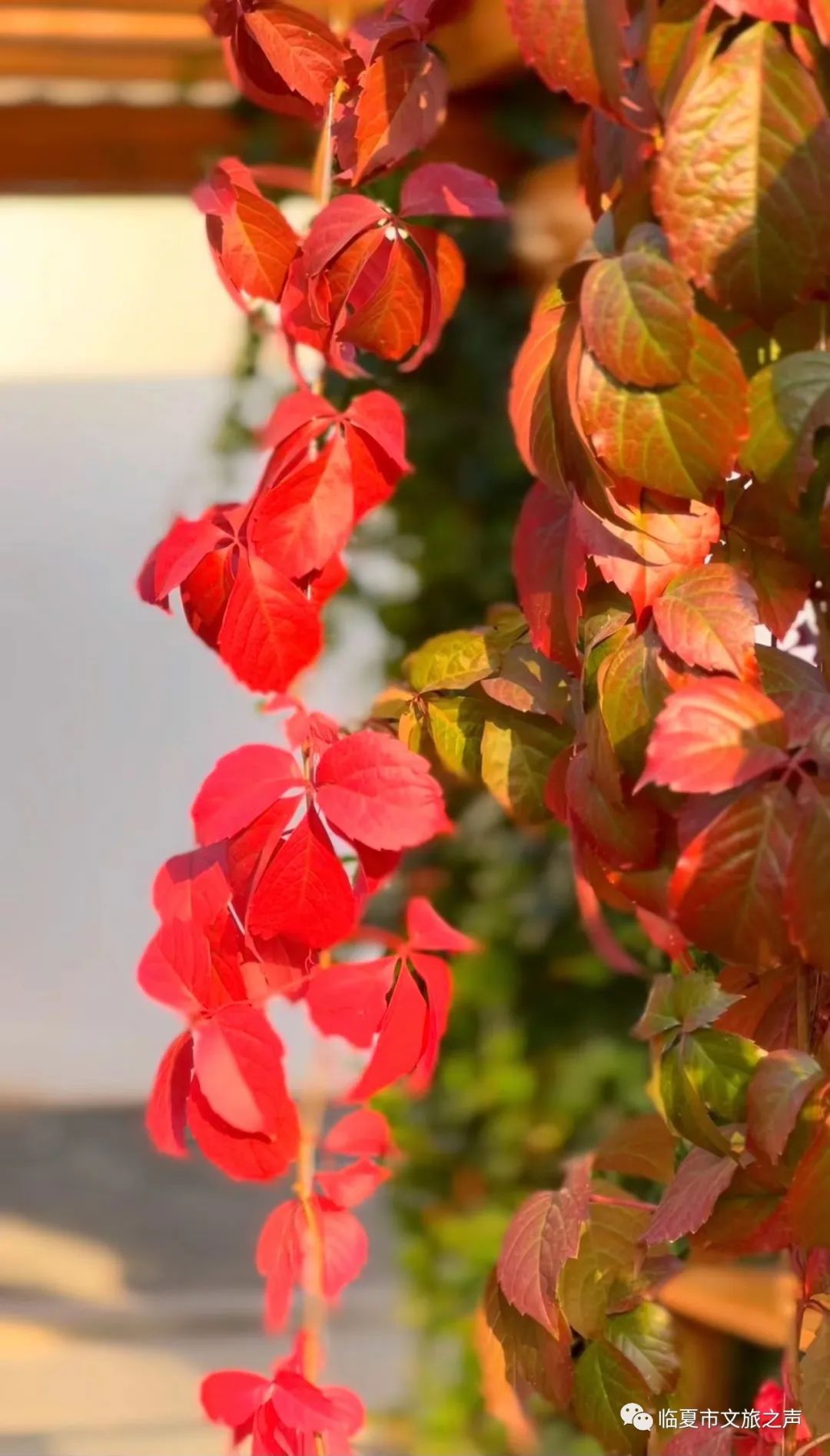墙壁上,屋檐下,棚架上,爬山虎沐浴着秋日暖阳,用自己灿烂明艳的色彩,装饰着古巷之秋。它们美的淋漓尽致,美的热闹壮观,美的轰轰烈烈,也美的“不可一世”。