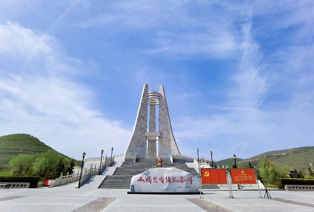 图为高高矗立的南梁烈士纪念碑。田伟摄