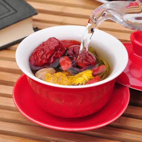 兰州人习惯说“刮个碗子”,那是因为喝这碗茶姿势很讲究,在饮用时,必须是一手捧在盖碗底,另一只手揭起碗盖,把茶碗中的飘料轻轻划向下嘴处的反方向,滗出的茶汤就可以无障碍的入口了。