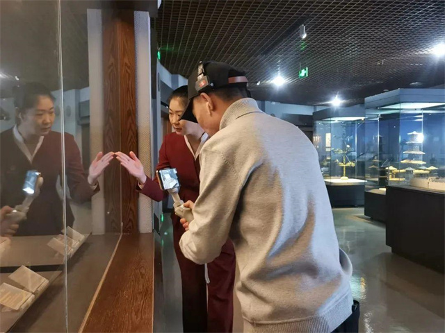 甘肃省博物馆讲解员王岚为同学们讲解文物