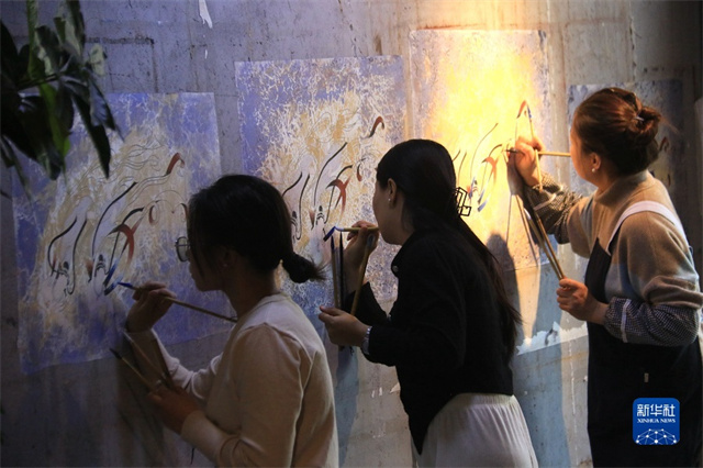 2月22日,在敦煌小镇鸣沙书院,学员学习敦煌壁画临摹技艺。新华社发(张晓亮摄)