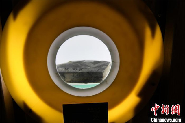图为甘肃省博物馆展示的三叶虫古生物化石。