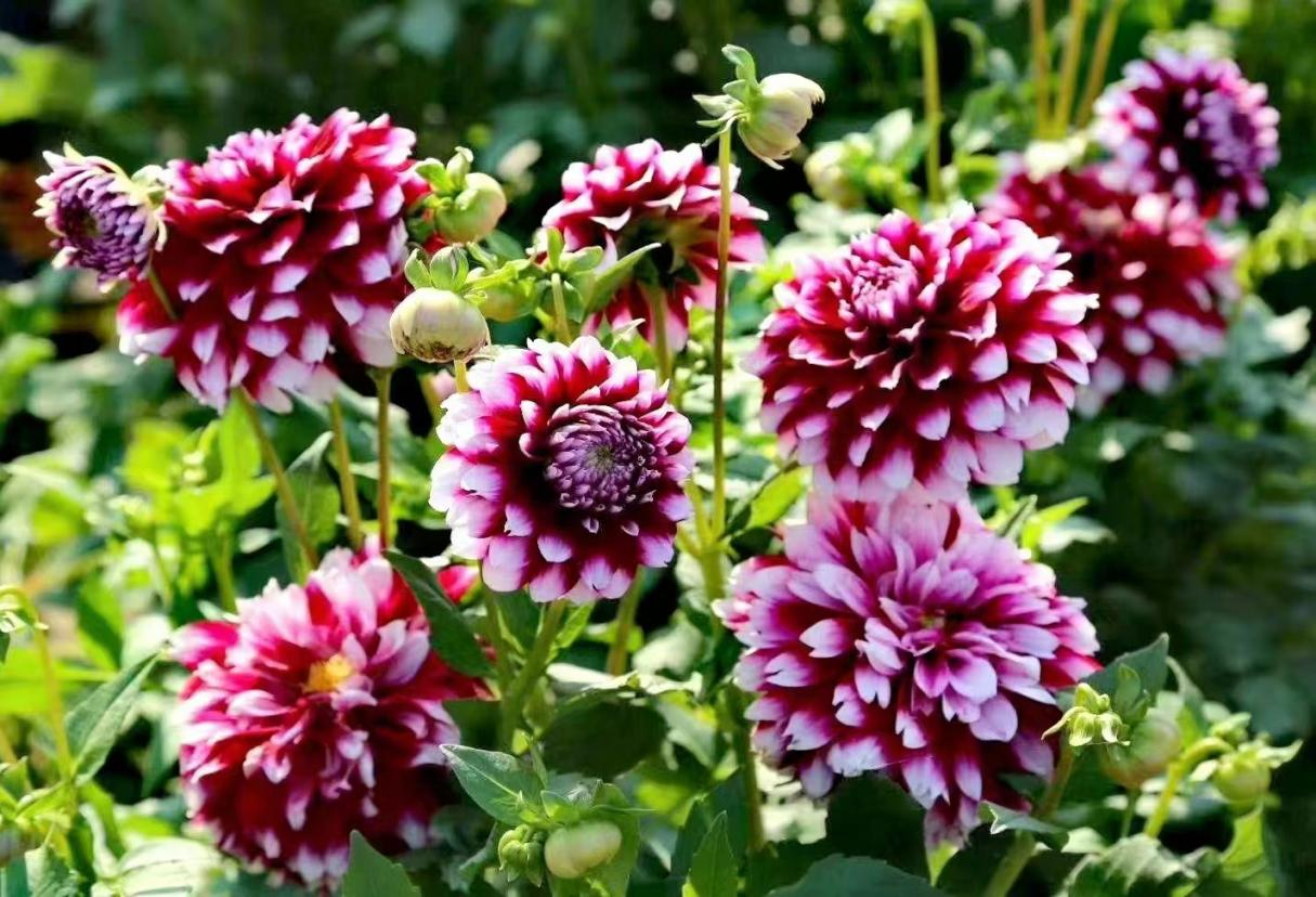 在即将到来的夏季走进香怡南塬,各色各样的大丽花花团锦簇、色彩缤纷,有的盛开正艳,有的含苞待放,五彩斑斓,风姿绰约在微风中颔首带笑,摇曳身姿。低头就能看到紫白相间的花瓣层层叠叠,花瓣随风摇曳,引无数蝴蝶翩翩起舞,不知不觉间惹人喜爱。据悉,大丽花有一定的活血散瘀、祛风止痒等作用;大丽花根作为药用,具有清热解毒、消肿、健脾消食的作用。