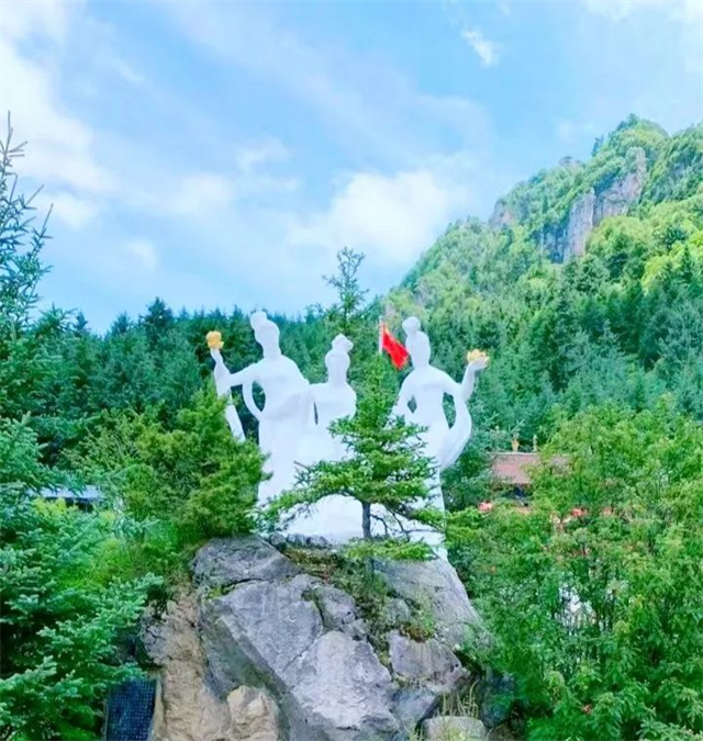 玉皇阁向北,有三伏天结冰的水帘洞,从玉泉阁返回,有小径,沿路有鹞子翻身蛇倒退、石佛送客、东天门、西天门、罗汉坡、东方顶、四圣宫、三宵殿、雷祖殿、观音殿、神仙洞、老君洞、七真殿、送子殿、舍身崖、一杆旗等众多景点,风格有异,各具情趣。这里野花怒放,香气扑鼻,松涛阵阵,流水飞泉,清雅幽静,移步皆景,叹为观止。