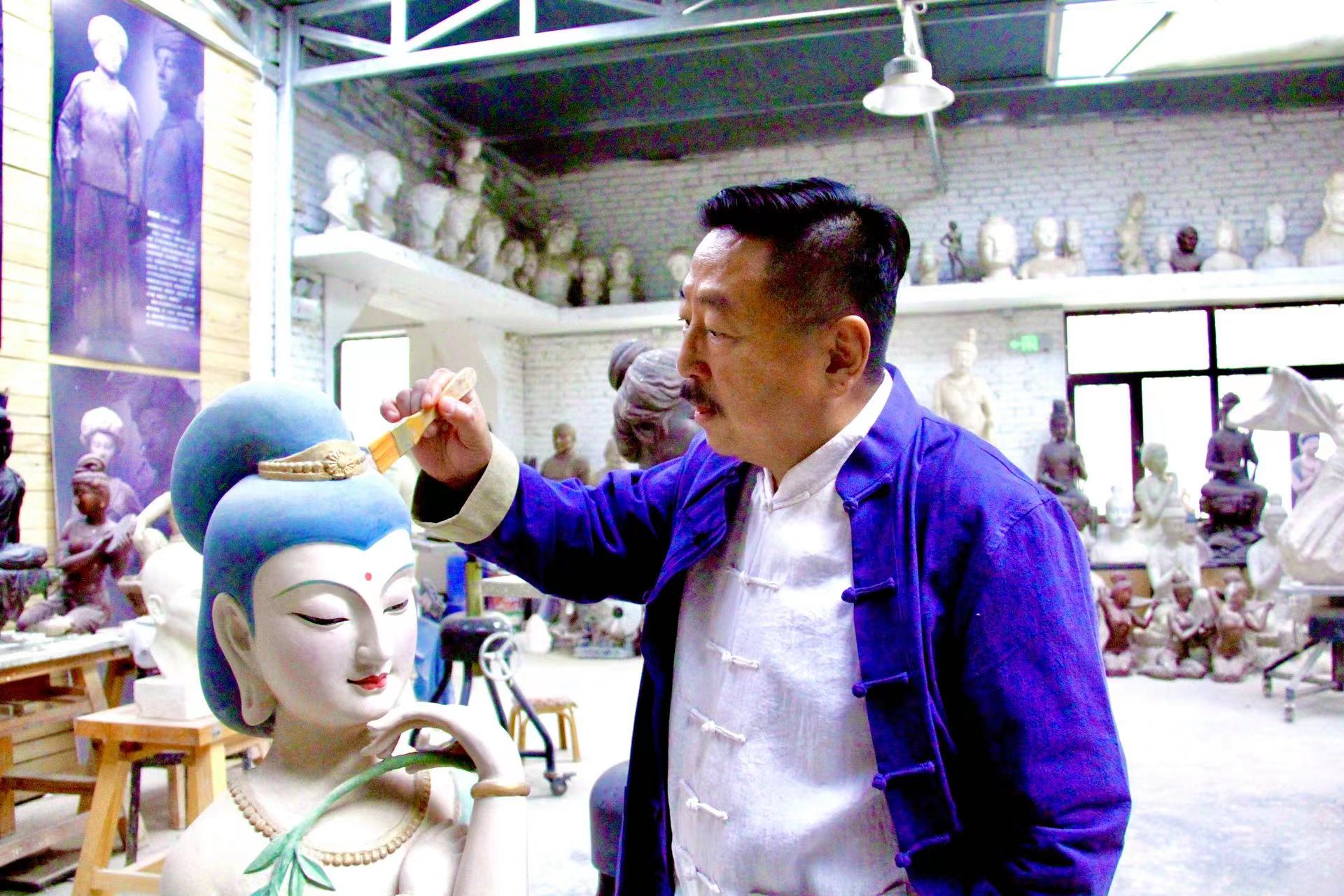杜永卫向我们介绍:“我们工匠村除了研学另一部分,就是我们的非遗传承,因为我们是非遗传承基地,我是敦煌彩塑代表性传承人,我的几个徒弟也分别是我们省级、市级、县级的传承人,所以我们本身肩负着这么一种责任感。”
