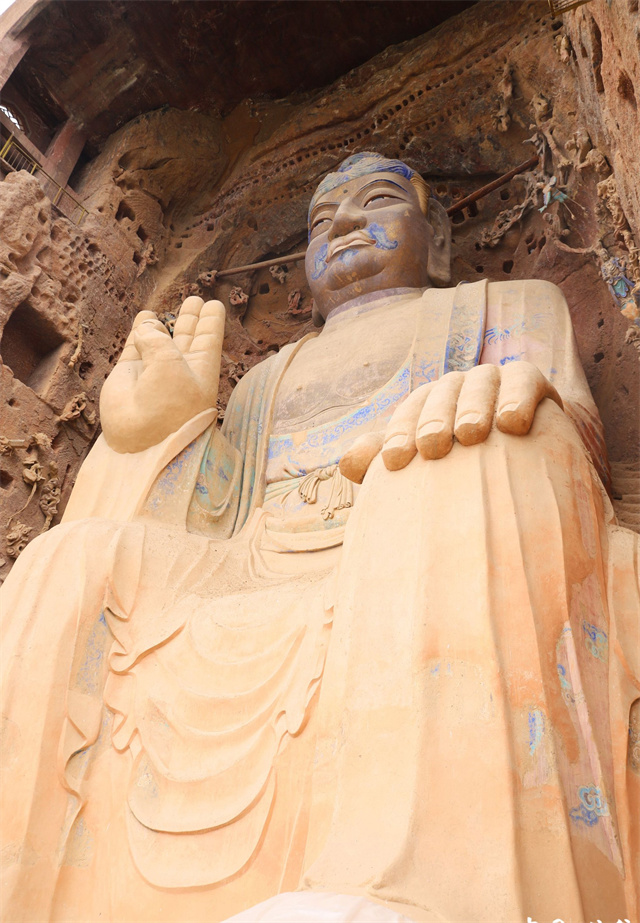 大像山大佛位于高出地面200米的崖窟内,是全国同类石窟中相对地面最高的一尊,也是渭河流域唯一一尊唐代大佛,堪称“云中大佛”。躯体宏厚高大,面相庄严,静穆慈祥,被全国著名石窟专家温廷宽先生誉为“丝路明珠·国之瑰宝”。