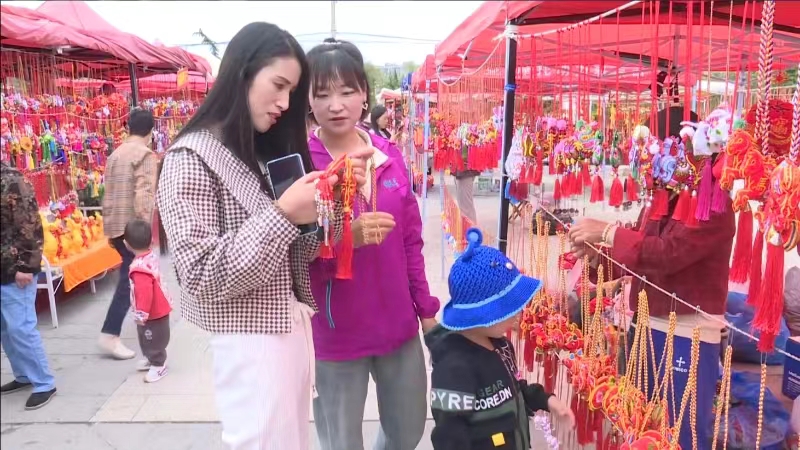 “这是我的纯手工活,一年闲下来我就做,忙的时候我就做家里的农活,到了端午节前就拿到县上卖,卖点钱也能补贴家里面的生活。”摊主高紫热一边忙碌地展示着各种款式的荷包,一边介绍。她的荷包采用传统手工缝制技艺,款式多样,有蝴蝶、鸳鸯等造型,每一个都充满了艺术感和节日氛围。