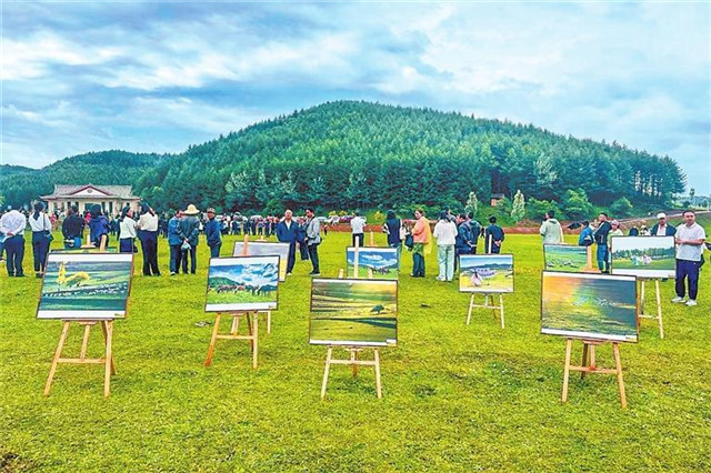 清水县秦亭镇草原上的展览让游客在自然山水间感受乡村文化的魅力。