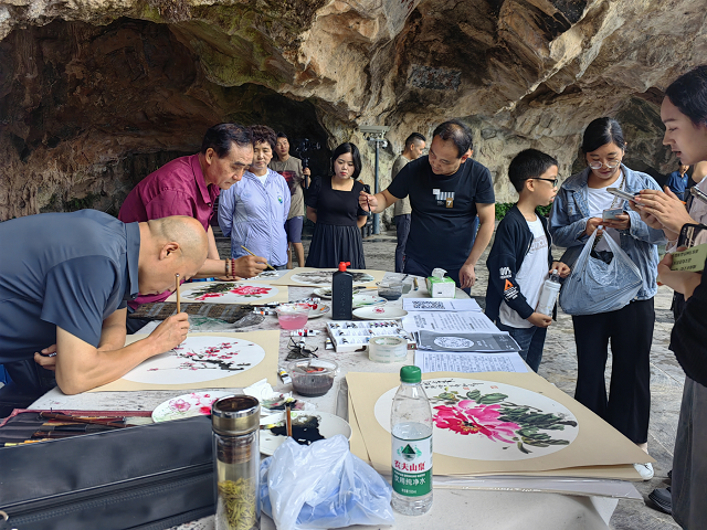 活动现场,画家们以精湛的技艺创作了各种题材的美术作品,书法家们则以“南北过渡带 康养陇之南”“人生小满胜万全”“万象洞天”等别致独特的文案在团扇、小书签上倾情书写。活动吸引了大量游客驻足观赏,进一步提升了景区的知名度和影响力。