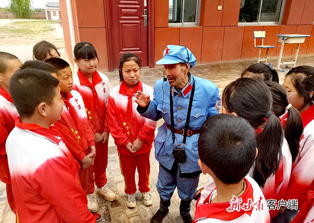 张存义,是平凉市泾川县义务讲解员,也是当地孩子口中的“红军爷爷”。不久前,他还专程前往泾川县王村镇四坡小学,给孩子们讲述红二十五军的故事。