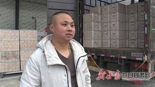 成都客商 黎仕锦 近日在静宁县深沟乡润园果业合作社院内,一进门记者便看到一辆辆大货车停在果库口排队装货,员工们正忙着将包装好的苹果装车,现场一番忙碌景象。在合作社办公室,合作社负责人刘金香正与成都客商黎仕锦洽谈业务。而黎仕锦只是近日来静宁采购苹果的众多客商之一。