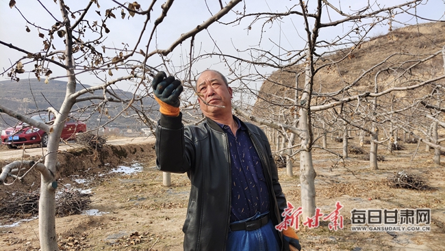 杨建辉正在修剪果树 “今年共计收购并贮藏1200多吨苹果,收购价保持在3元以上。目前已销售库存三分之一以上,销售收入达到320多万元,为周边果农带来直接经济收入700多万元。”刘金香介绍道,“我们润园果业创新销售模式,推出线上网卡,通过线下销售、线上提货的方式就能让客户足不出户吃到真正的静宁苹果。”