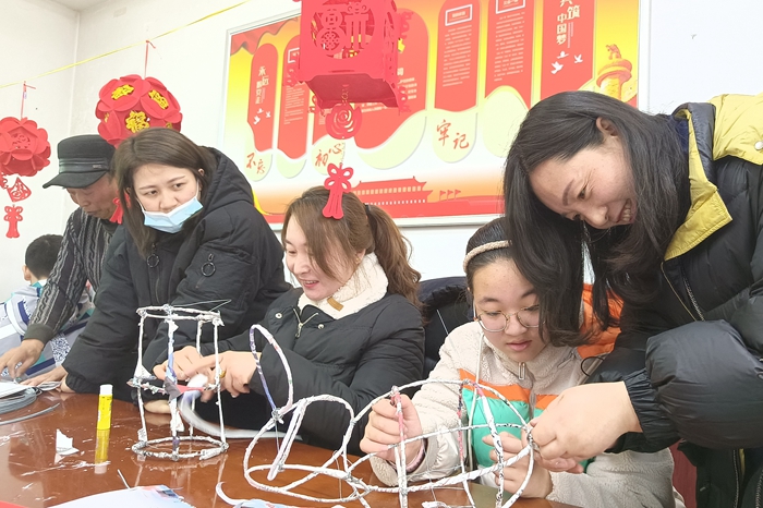 “这铁丝固定灯笼支架,比我们以前用废弃的竹子捆绑,既简单又省工省时,更重要的是重温了我儿时的记忆,让今年的元宵节过得更有意义,更难忘!”边扎灯笼边回想着自己童年时扎灯笼样子的张留香介绍道!