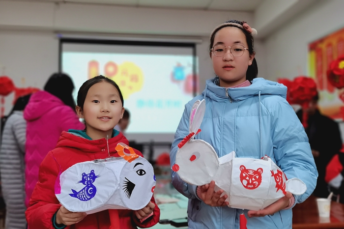 今年上五年级的王雨涵在现场老师的指导下,制作了一盏小兔子形状的灯笼,并在灯笼外面贴上了剪好的最近火爆的冬奥会“冰墩墩”吉祥物,“我是第一次学习制作灯笼,在老师的指导和帮助下,我完成了最喜欢的灯笼,感觉十分有趣,让这个寒假变得很有意义!”在一旁的同伴杨洁雨也兴奋地介绍她的收获,“这次活动太有意义了,不仅提高了我的动手能力,同时我们可以互动交流,让我们的灯笼变得更漂亮,更独特!”