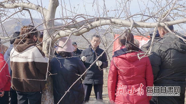 静宁县林草局果业技术人员鲍敏达给果农讲解春季果园管理技术 同时线上培训也成为了静宁县果业技术培训的有力举措和亮点,静宁县果业技术人员从建立标准化果园、管理规范化、标准化等专业技术点着手,用通俗易懂的语言,一一进行了讲解,让线下的果农在家里、田间地头能随时随地收看。这种随手机移动的技术,极大的方便了果农掌握学习技术,让线上培训更深得人心。