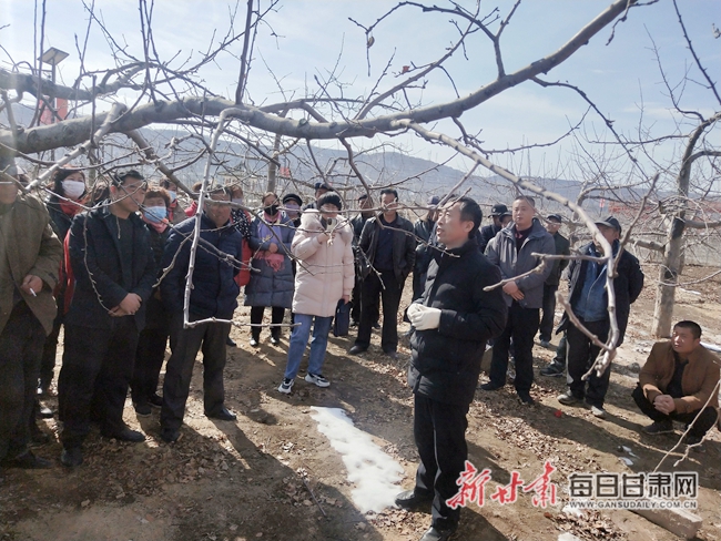 果业技术人员鲍敏达边讲解边示范 近日,静宁县林草局果业技术人员深入城川镇吴庙村,针对本乡镇果园老化、果园管理技术落后等问题,果业技术人员鲍敏达围绕老果园改造的必要性、如何提高果农自我管理果园的能力和水平,加快推进苹果产业转型升级入手,在果园现场进行了“课堂教学”。