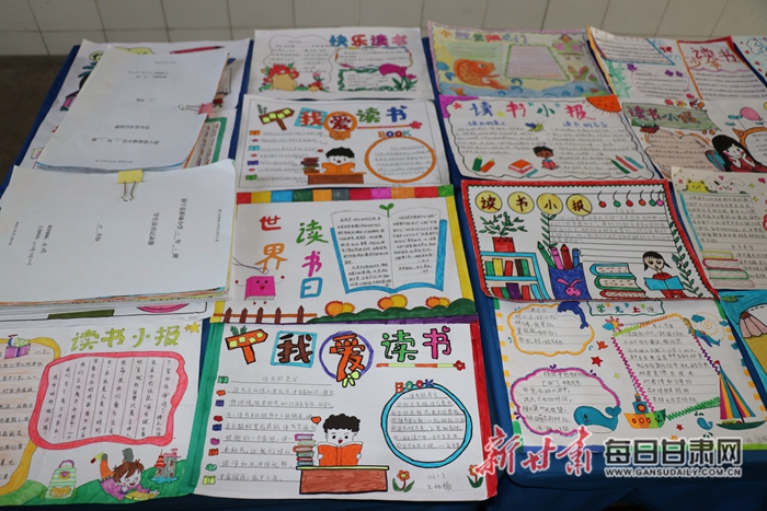 各种各样的读书手抄报 为了增加师生的课外阅读量,让新教育实验理念融入校园、深入人心,丰富师生的文化底蕴,大力营造浓厚的读书氛围,努力让读书成为一种师生习惯、精神追求和校园文化。学校每学期为学生推荐适合阅读的书目,鼓励学生分阶段进行阅读。同时每周开设一节阅读导读课,教师指导学生进行阅读,并教给学生常用的速读、略读、精读等阅读方法。同时指导学生学会写读书笔记,记读书摘要,做读书卡片和写读后感的方法,使读书活动能够由表及里地影响学生的行为习惯、性格形成以及思想表达。