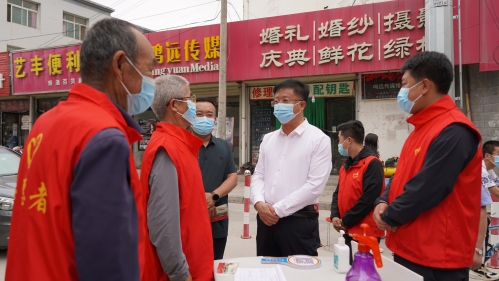 7月17日,静宁县委书记何鹏峰带领县委办、公安局、交运局等部门主要负责人,深入城区检疫点、居民小区及农贸市场、广场等重点场所,督查静宁县城区疫情防控工作。县委常委、宣传部长刘飞一同督查。