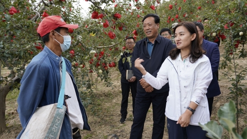 9月13日,静宁县委副书记、县政府县长王蕾带领县政府办、林草局、农业农村局、果业办、果树研究所等部门负责人调研全县苹果生产销售工作。