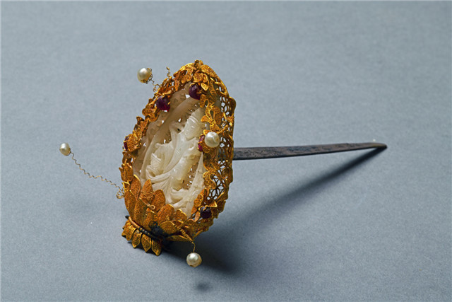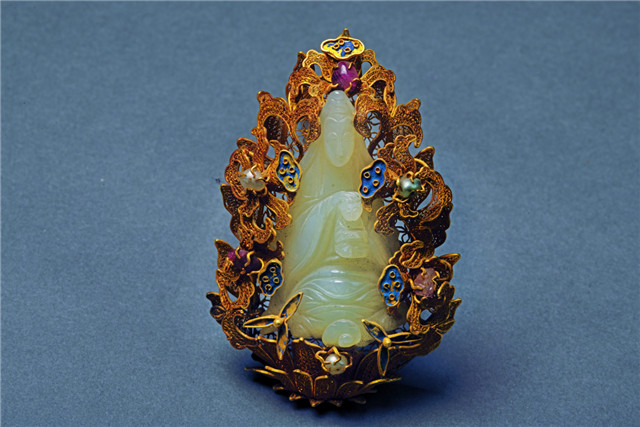 白衣寺塔遗珍——金累丝嵌白玉观音簪(兰州市博物馆藏)