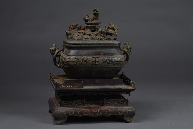 肃王墓出土明王字狮钮形铜炉(兰州市博物馆藏)