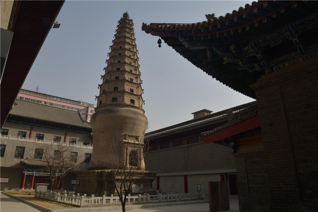 末代肃王朱识鋐所书“耸瞻震旦”,存于白衣寺塔佛龛上