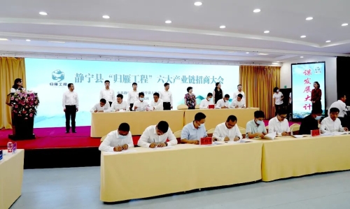 2022年,静宁县深入推进、创新实施“归雁工程”,6月29日,静宁县召开“归雁工程”六大产业链招商大会,为聚力推动全县经济社会高质量发展注入新动力、增添新活力、拓展新空间。当年,静宁县设立上海等 3 个驻外服务站,自主研发“四库两平台”网络支撑系统,洽谈实施归雁项目113项187.8 亿元,落地建设 49 项、完成投资 17.6 亿元,招商引资到位资金 40 亿元、增长 90%,为加快发展提供了有力支撑,县列重大项目累计完成投资 62 亿元、增长18%。