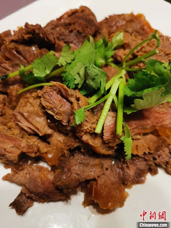 资料图为餐桌上的驴肉。中新社记者 冯志军 摄