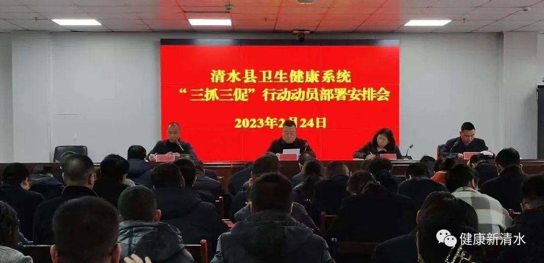 会上,宣读了《清水县卫生健康系统“抓学习促提升抓执行促落实抓效能促发展”行动实施方案》,成立了清水县卫生健康系统“三抓三促”行动领导小组,明确了工作职责。全县卫生健康系统“三抓三促”行动从2023年2月开始,12月结束,分三个阶段进行。2月底前为安排部署阶段,3至12月为统筹推进阶段,12月底为总结提高阶段。要求各乡镇卫生院和县直医疗机构结合各自工作实际,尽快制定出台本单位“三抓三促”行动实施方案。