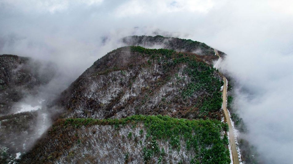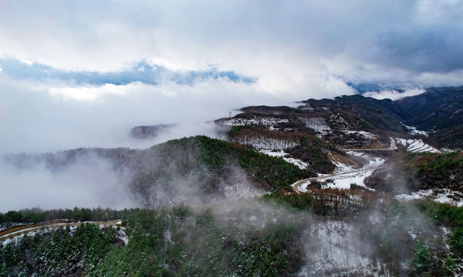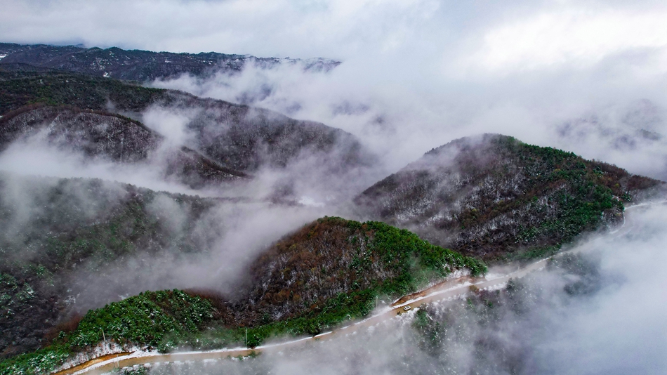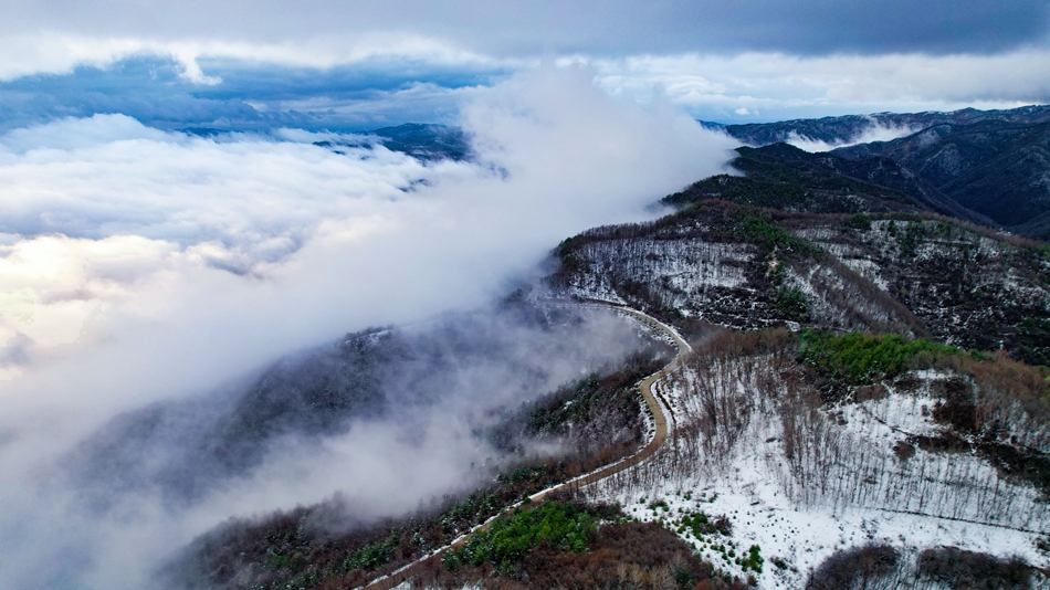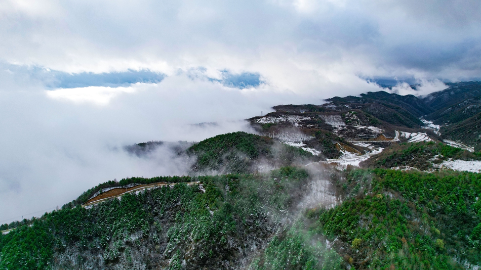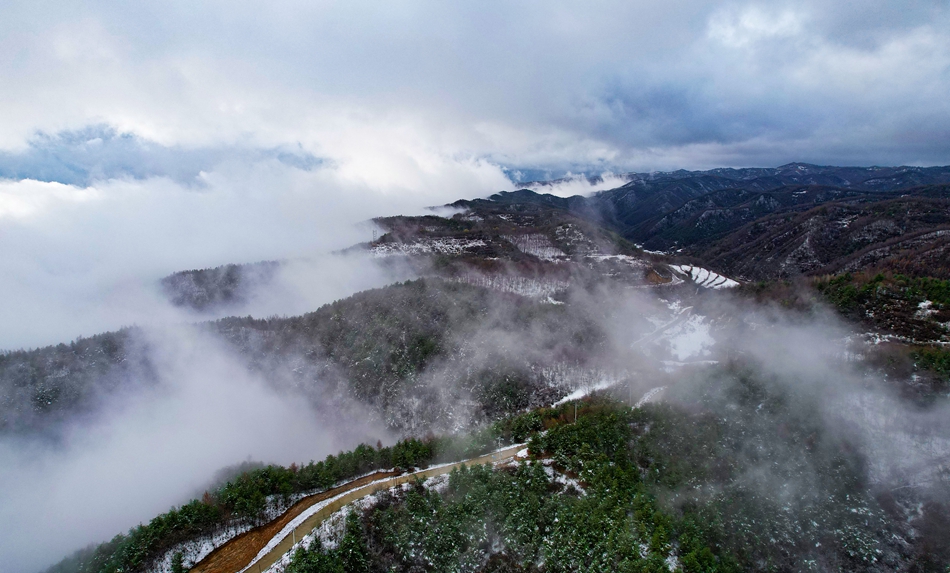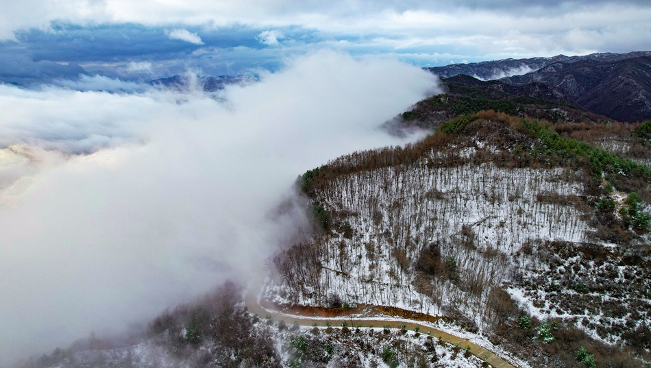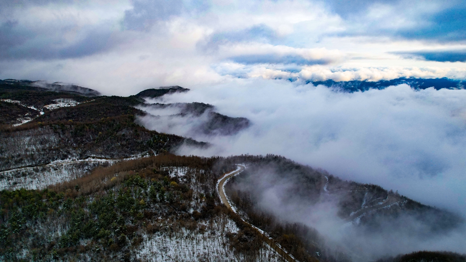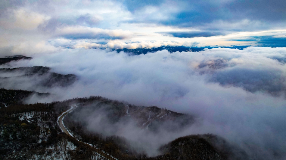 近日,甘肃省清水县部分地区迎来降雪天气,春雪浅缀初春的山峦,给山峰蒙上了一层白纱,云海随着山势潜入舒卷,时而汇聚成海,时而化为云烟。