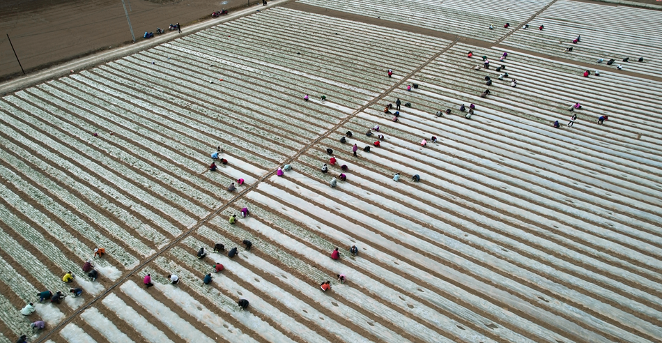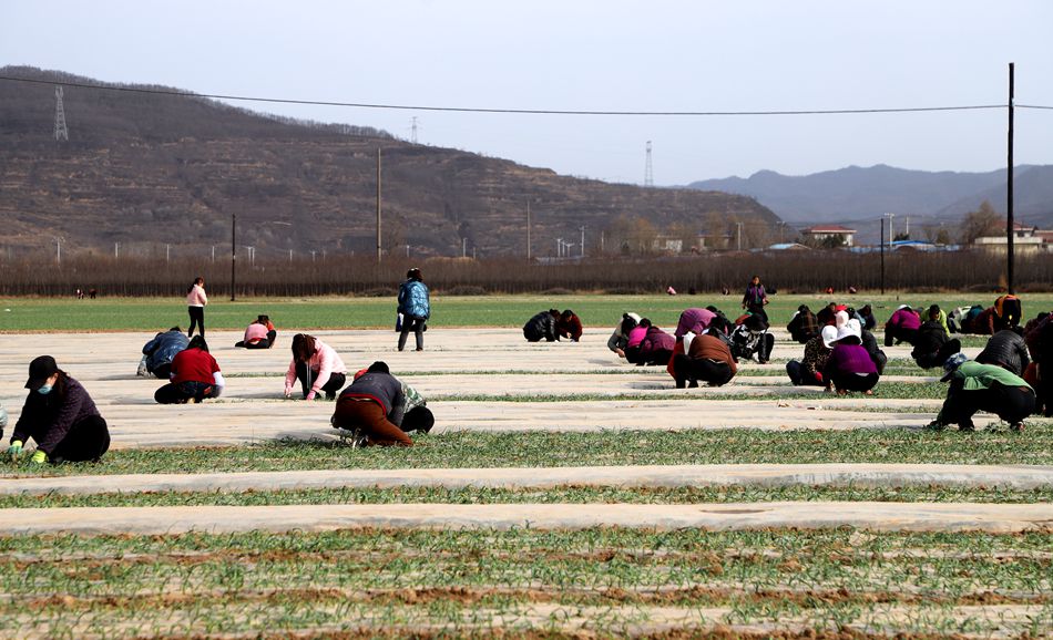 在永清镇杜沟村百亩种植农场内,一垄垄排列整齐的蒜苗吐露出绿叶,长势喜人。当地村民抢抓幼苗生长的关键时期,进行破膜、放苗、培土等工作,田间地头人头攒动,一派生机勃勃的“春”景。