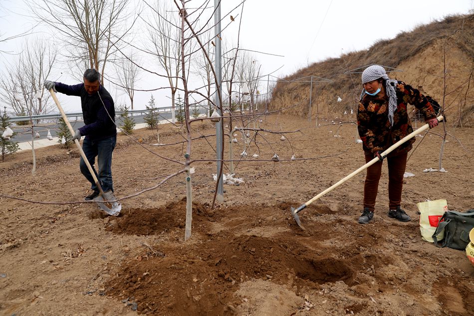 来到白驼镇玉屏梁优质核桃示范管理点,村民正在进行园区除草、整地、施肥、修剪果树等工作,被修剪过的核桃树显得“精气神”十足。