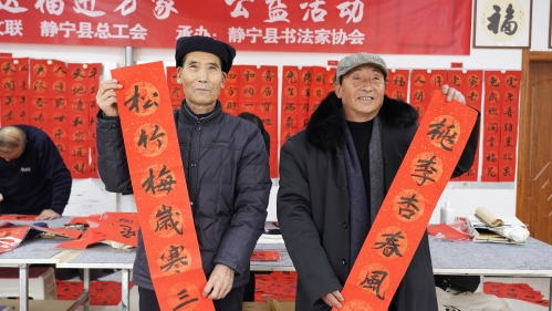 本次活动由县文联、县总工会联合主办,静宁县书法家协会承办。活动现场,随着书法家们不停的挥毫泼墨,一幅幅充满新春祝福和平安吉祥的春联挂在墙上、铺在地上等候晾干。未来几天,这些春联将被免费送给群众,为春节增添年味。