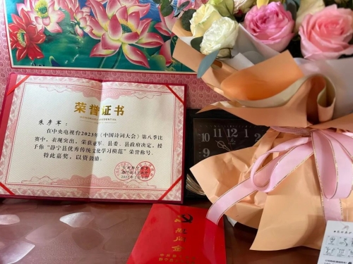何鹏峰、王蕾在恭喜朱彦军梦圆《中国诗词大会》舞台,祝贺他取得骄人成绩的同时,衷心地感谢他此次也为静宁争了光,为全体静宁人民赢得了荣誉。同时,为全县人民树立了一个良好的学习榜样,希望未来在他的典型带动下,全县能够涌现出更多像他这样的优秀人才,不断走向全国乃至更大更广阔的舞台,在实现个人抱负的同时,为家乡和静宁人民争光。