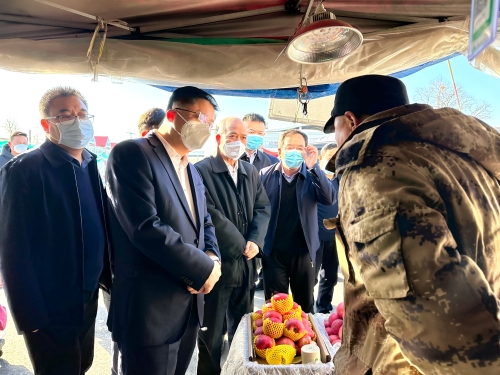 为进一步做大做优做强静宁县特色农业产业,2月19日,静宁县委书记何鹏峰带领招商团在北京新发地农产品批发市场实地考察,与企业洽谈交流,深入沟通对接,宣传推介静宁及静宁苹果等特色农产品,助推项目招引,推进产业合作。县委常委、县政府副县长王悉润,县人大常委会副主任杨飞一同考察。