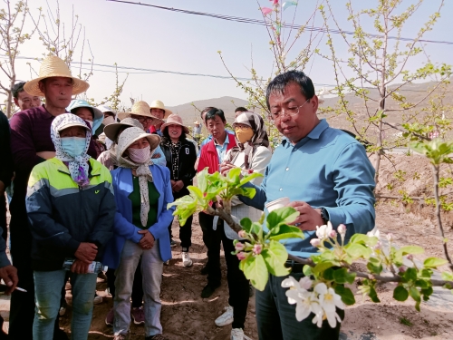静宁县林草局果业办主任贾军平介绍,“当前,我县苹果由南向北逐渐进入盛花期,为提高座果率,我们果业技术部门结合‘三抓三促’行动,组织专业技术人员进村入园(对果农)开展技术指导,为广大果农花期防灾减灾提供技术保障。”