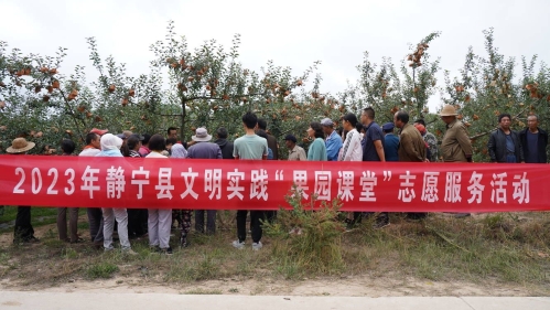 群众在哪里,文明实践活动就延伸到哪里。为进一步弘扬“奉献、友爱、互助、进步”的志愿精神,静宁县充分发挥新时代文明实践所、站堡垒作用,积极开展文明实践“果园课堂”志愿服务活动。